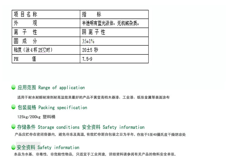 - 用途:高檔木器漆,工業漆,紙張金屬等表面涂布
