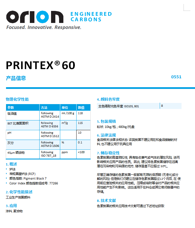 歐勵(lì)隆特種炭黑,PRINTEX 60,德固賽炭黑色素